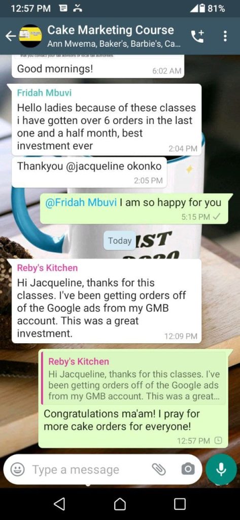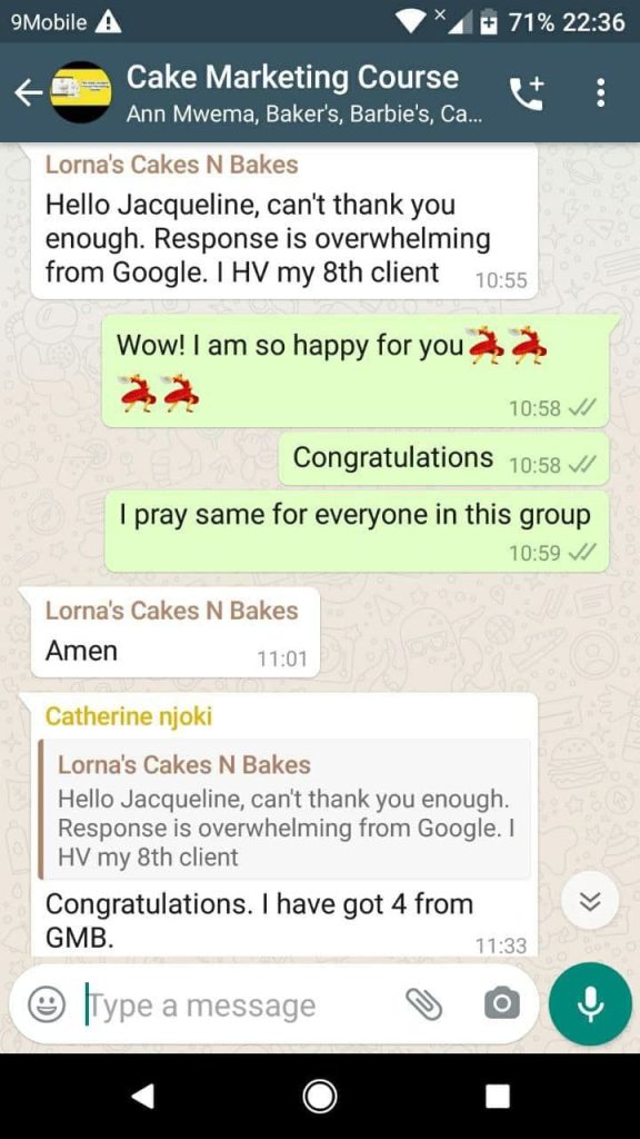 I have successfully trained over 400 bakers on how to market their cakes, pastries and other bakes on google.